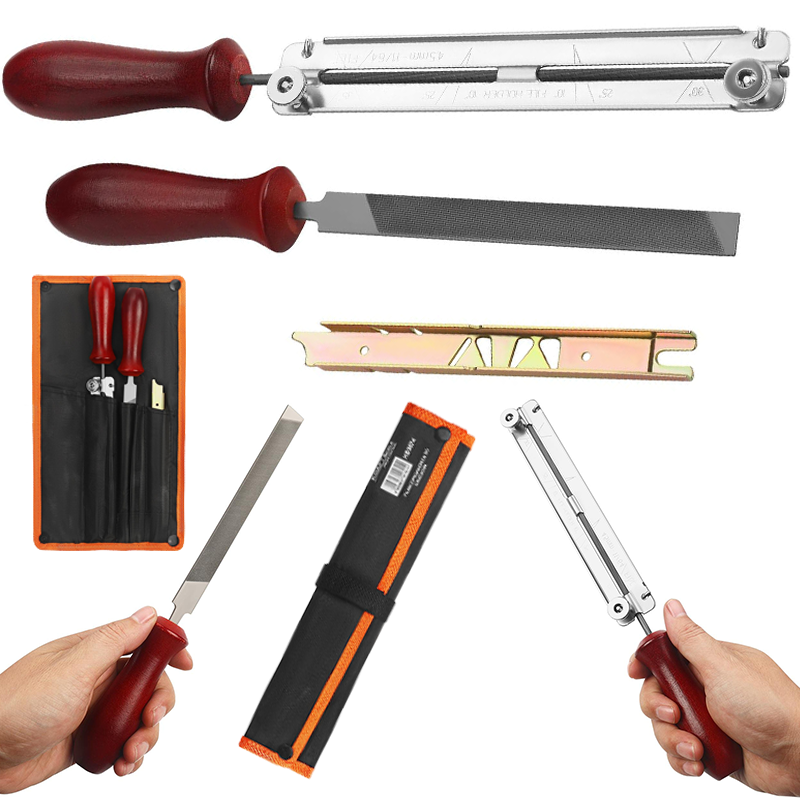 Vodič drži pilnik u idealnom položaju, što osigurava ujednačeno i učinkovito oštrenje svakog zuba. Lagana i kompaktna konstrukcija čini ga savršenim za radionicu i teren – za amatere i profesionalce.