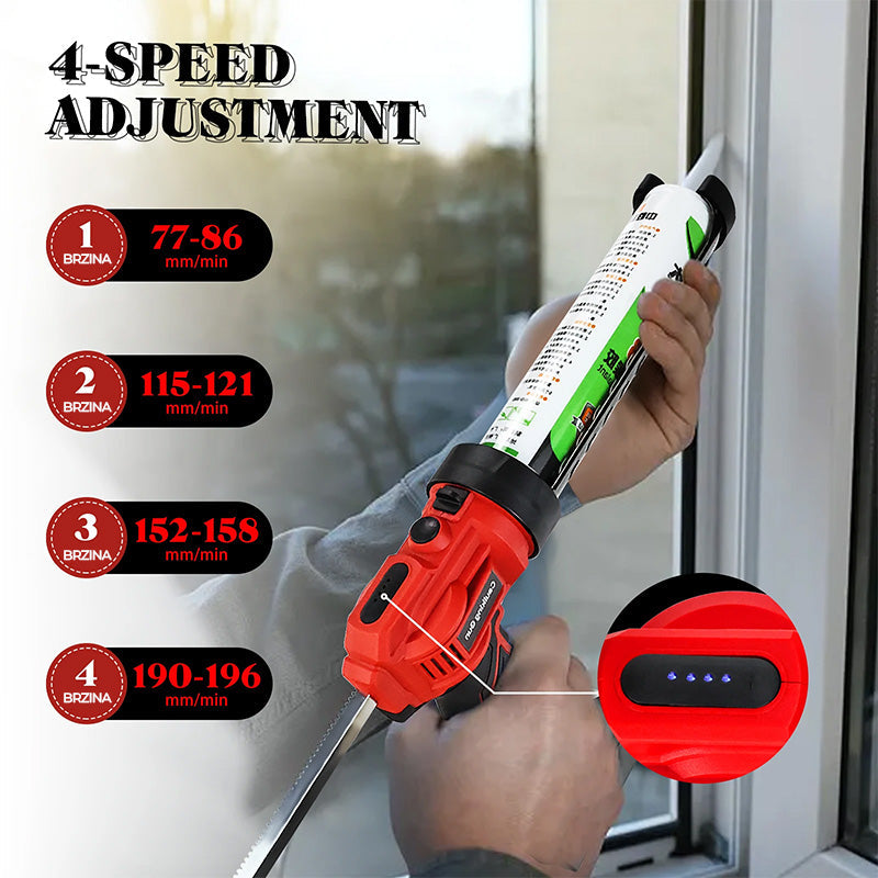 Revolucionarni akumulatorski električni bežični pištolj za brtvljenje - idealan alat za precizno i čisto nanošenje cementnih i staklenih ljepila. Ovaj alat je neophodan za svakoga tko se bavi brtvljenjem, nudi slobodu kretanja bez kabela.