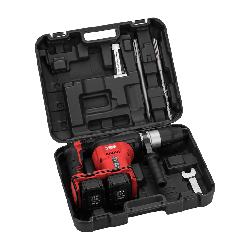 Sustav SDS-PLUS omogućuje brzu izmjenu pribora bez dodatnih alata, dok spojka za preopterećenje štiti korisnika i mehanizam od zaglavljivanja svrdla. Ergonomski dizajn i rad bez kabela osiguravaju slobodu kretanja i veću udobnost čak i u skučenim prostorima.