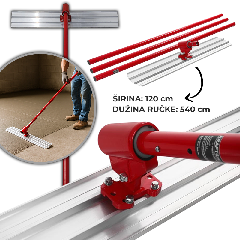 Alu teleskopska letva za ravnanje betona je profesionalni alat za precizno i neovisno niveliranje svježe izlivenog betona. Potpuno izrađena od laganog, koroziji otpornog aluminija, ova estriha kombinira čvrstoću i udobnost pri radu na velikim površinama poput podnih estriha, terasa, prilaza i industrijskih podova. Ergonomski oblikovana drška te savršeno izravnana radna ploča jamče besprijekorne završne obrade bez skupih strojeva.