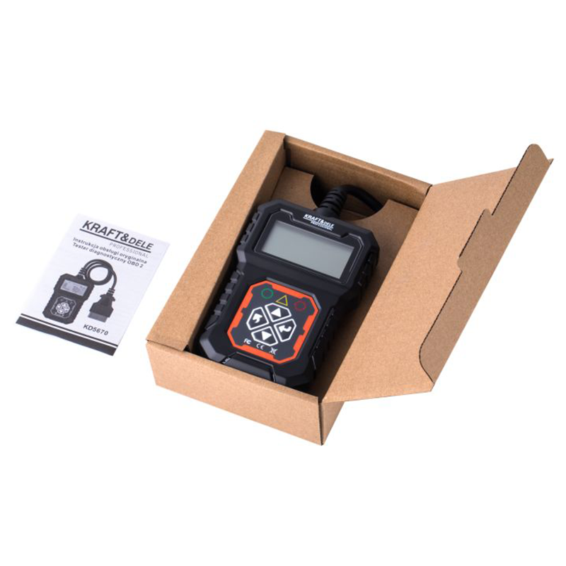 Dijagnostički skener Kraft&Dele omogućuje brzu i preciznu dijagnostiku sustava kontrole motora putem OBDII sučelja. Kompaktan i jednostavan za korištenje, ovaj uređaj je idealan za vozače, mehaničare i servisere, pružajući detaljne informacije o radu motora, emisijama i mogućim kvarovima.