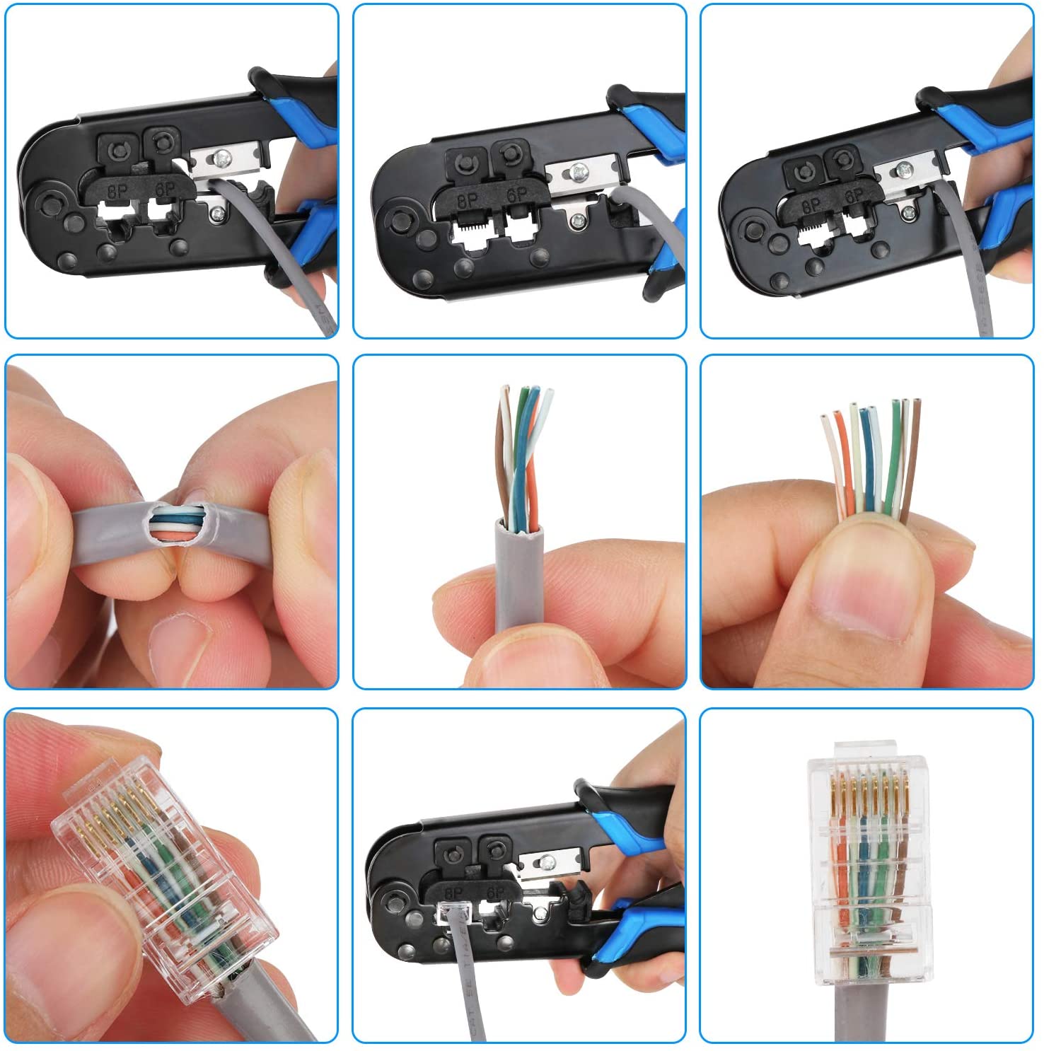 odlična za skidanje izolacije+ rezač + krimper u jednom alatu. Dizajniran za svakodnevnu instalaciju kabela. Alat se može koristiti za krimpanje RJ45 modularnih računalnih utikača, modularnih telefonskih utikača , skidanje i rezanje viška žice.