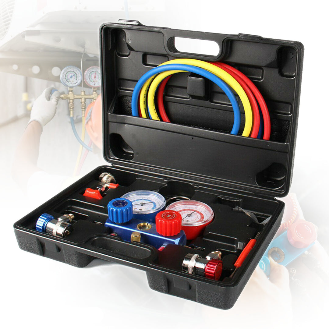Profesionalni komplet za ispitivanje propuštanja klima uređaja i punjenje idealno je rješenje za samotestiranje klimatizacijskih sustava. Uspoređujući tlak visoke strane i tlak niske strane sa specifikacijama sustava klimatizacije, može se dijagnosticirati potencijalni kvar klime