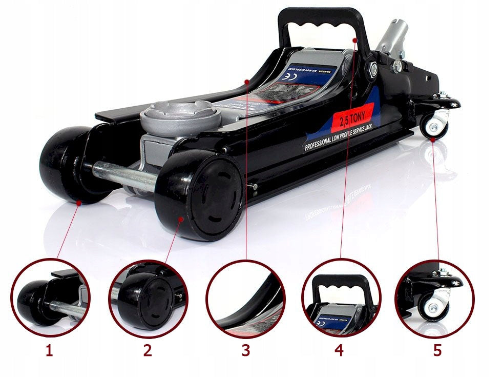 Kvalitetna niskoprofilna podna dizalica Karakteristična značajka dizalice je mala početna visina, tako da dizalicu možete umetnuti ispod svakog automobila, posebno korisno za niske sportske automobile.