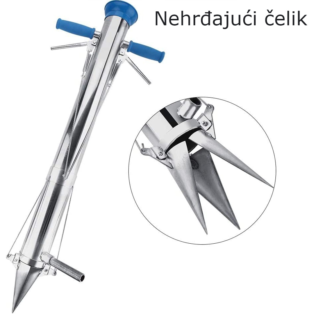 Ručna sadilica za sadnice od nehrđajućeg materijala s upravljačkom cijevi i čeljustima omogućuje automatiziranje procesa sadnje presadnica. Ovaj proizvod vam omogućuje da posadite presadnice rajčice, paprike, dinje, krumpira i krupnog sjemena na preciznu dubinu uz pomoć graničnika, a razmak između biljaka u redu definira se markerom i kreće se od 5 do 50 cm. Izrađena od metalne legure, ova sadilica je vrlo otporna i može se upravljati jednom rukom.