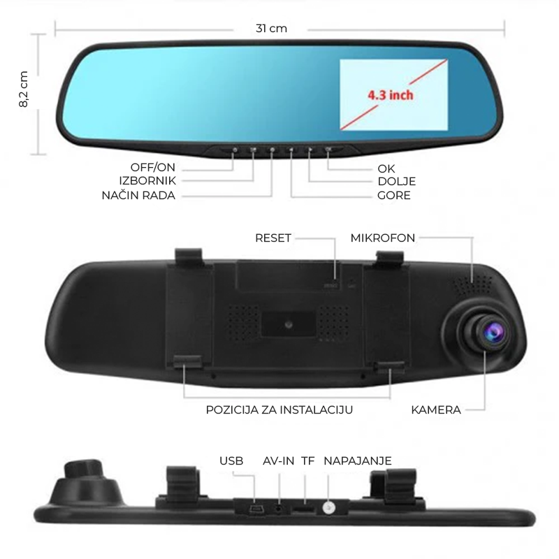 - Tip proizvoda: DVR za vožnju sa zrcalom retrovizora