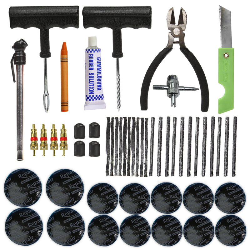 Set za popravak guma sastoji se od 50 dijelova i idealan je izbor za hitne popravke na putu, omogućujući brzu i efikasnu intervenciju bez potrebe za rastavljanjem gume.
