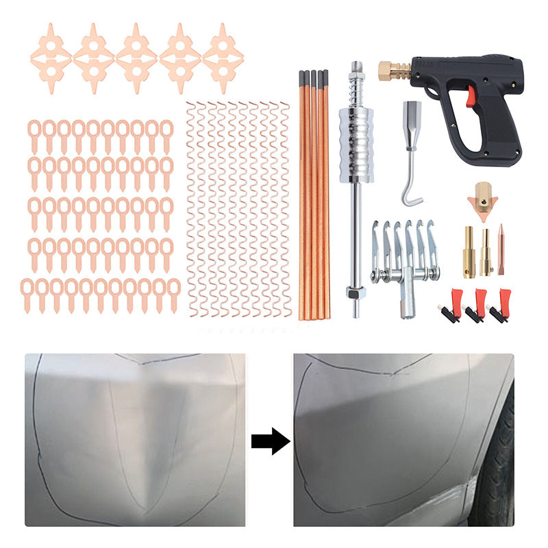 Set za popravak udubljenja na automobilu je idealno rješenje za obnovu karoserije vašeg vozila. Bez obzira na oštećenja koja su se pojavila, ovaj set je osmišljen kako bi ih besprijekorno sanirao.