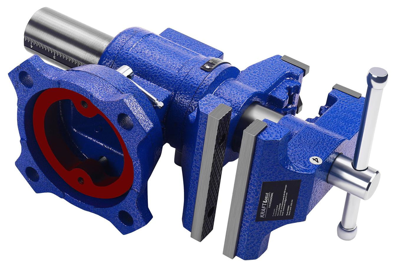Širina čeljusti 125 mm (5") i rotirajuća baza 360° omogućuju sigurno stezanje obratka pod bilo kojim kutom.