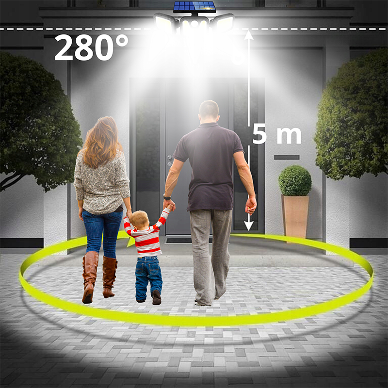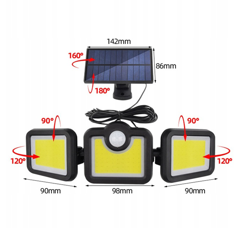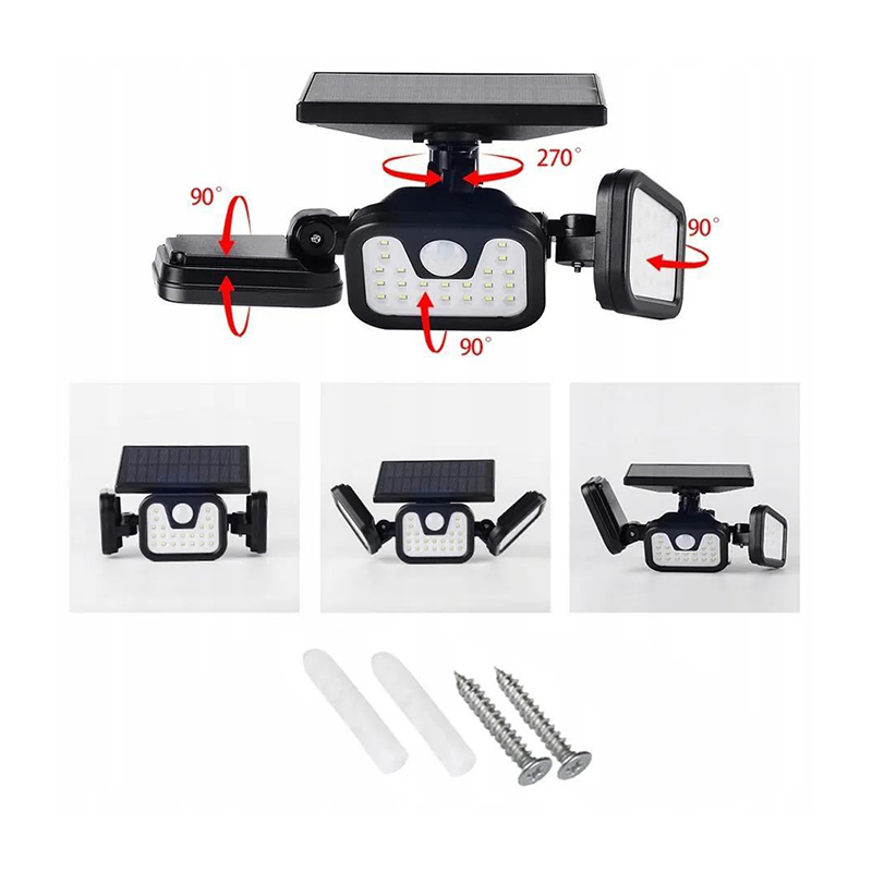 Ovaj model ima tri podesiva panela koji omogućuju optimalno usmjeravanje svjetla, kao i senzor pokreta i sumraka za automatski rad. Idealna je za vanjsku upotrebu – dvorišta, vrtove, prilaze, parkirališta i javne prostore.
