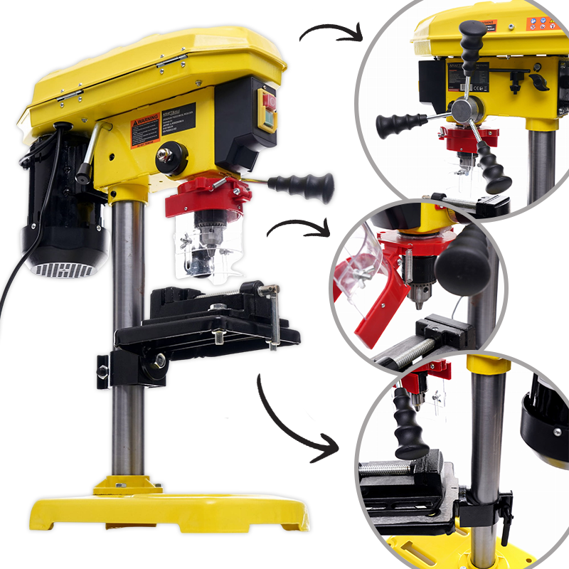 Ova snažna i prilagodljiva stolna bušilica nudi pouzdanost i preciznost, čineći je idealnim alatom za razne tehničke i stolarske primjene.